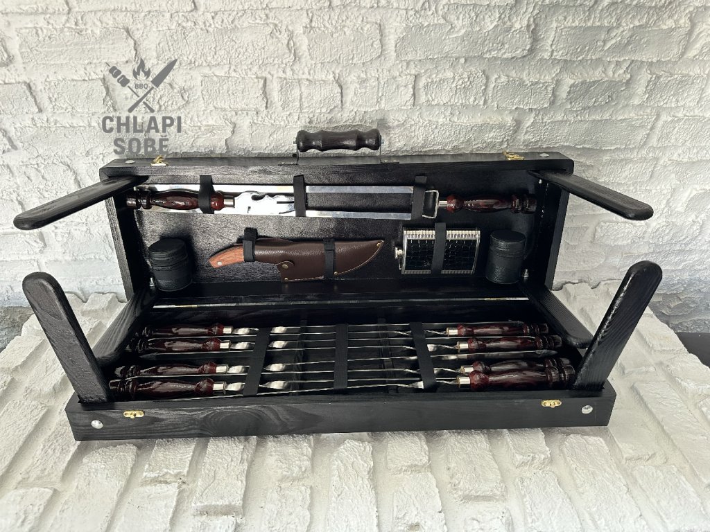 Sada „BLACK“ je BBQ souprava v černém provedení, uložená v praktickém kufru, který lze snadno rozložit na stůl.