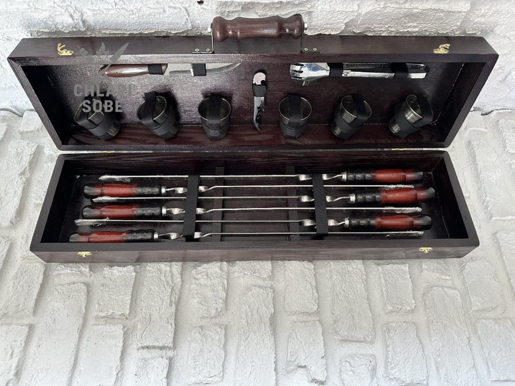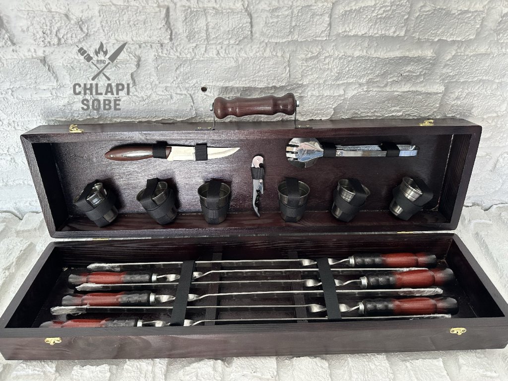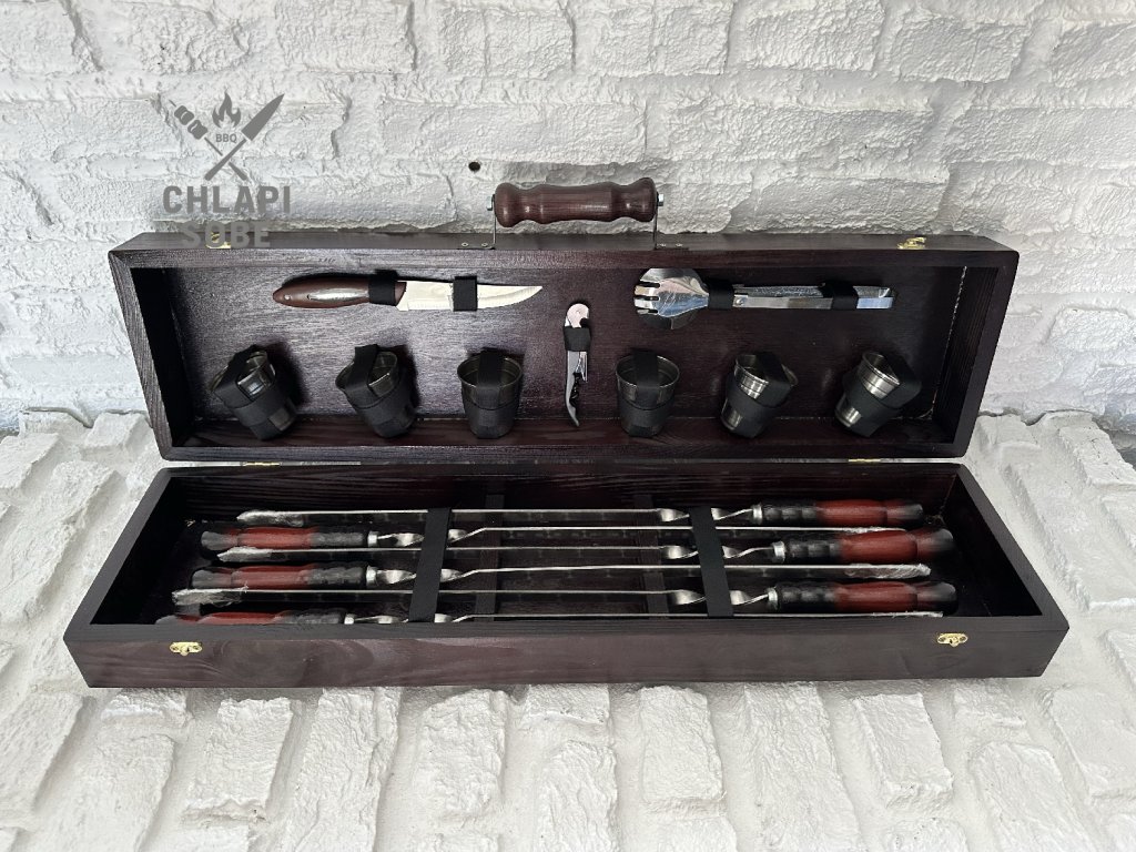 BBQ sada „LITE-1“ je ideální volbou pro ty, kdo hledají jednoduché, ale kvalitní vybavení pro grilování. Obsahuje 6 špízů z nerezové oceli o tloušťce 3 mm s jemným dekorem „mrazovka“ na čepeli, nůž, kleště na maso, vývrtku s otvírákem a 6 skleniček na nápoje. Skvělý základ pro venkovní vaření nebo jako dárek pro začínajícího gril-mastera.