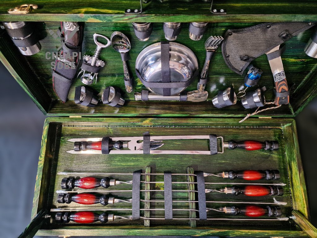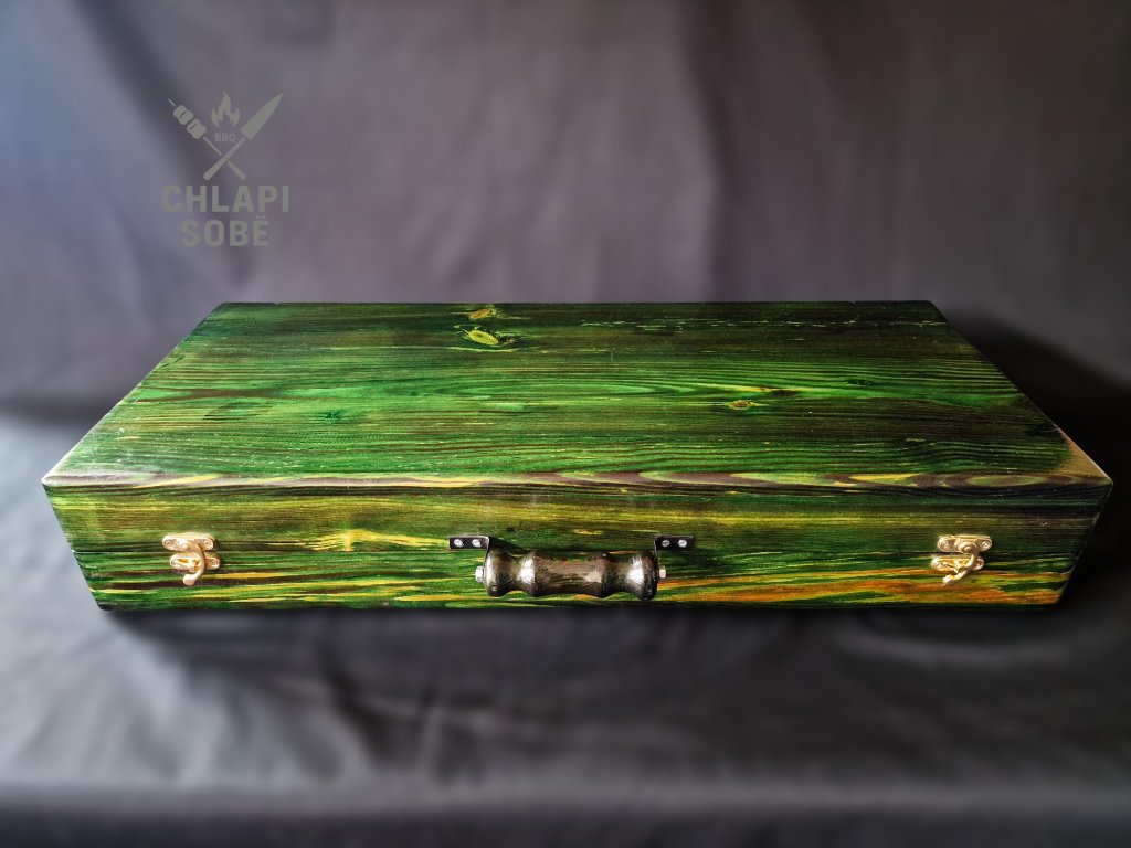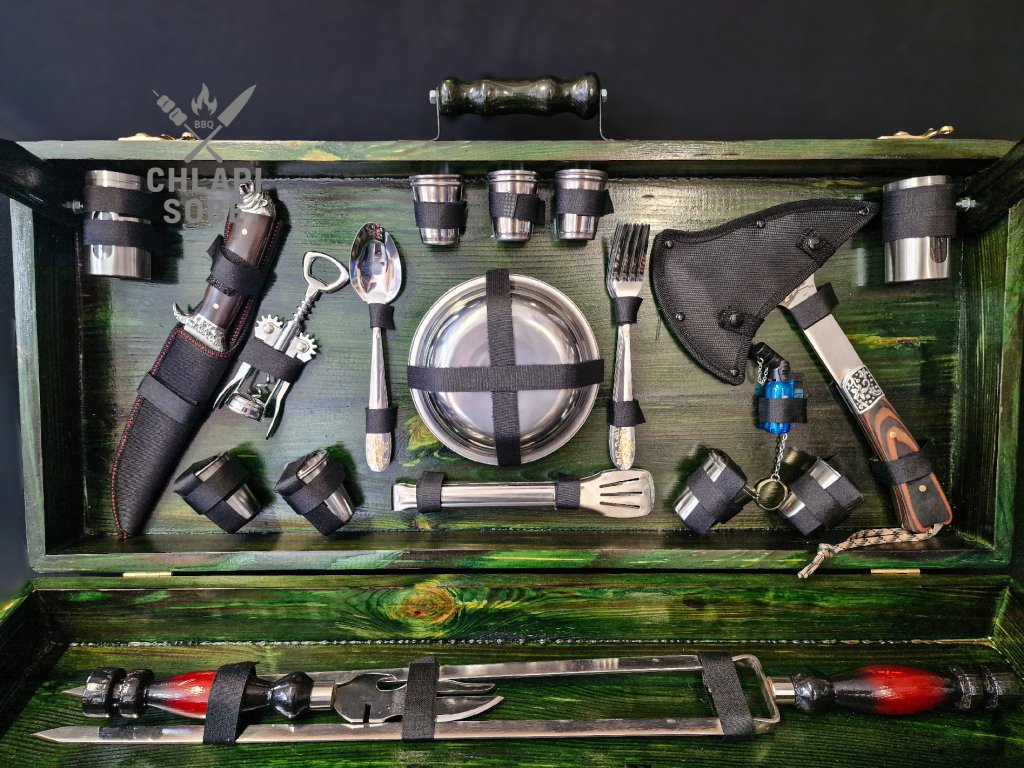 BBQ sada „Vlk“ v elegantním kufru, který se svižně přemění ve stůl, kombinuje praktičnost a styl. Ideální pro výlety, kempování nebo pikniky v přírodě. A pokud hledáte něco kompaktnějšího a cenově o kategorii níže, ale stále kvalitního a z lásky, tak Vám doporučujeme 🔗BBQ sadu „VLK-LIGHT“.
