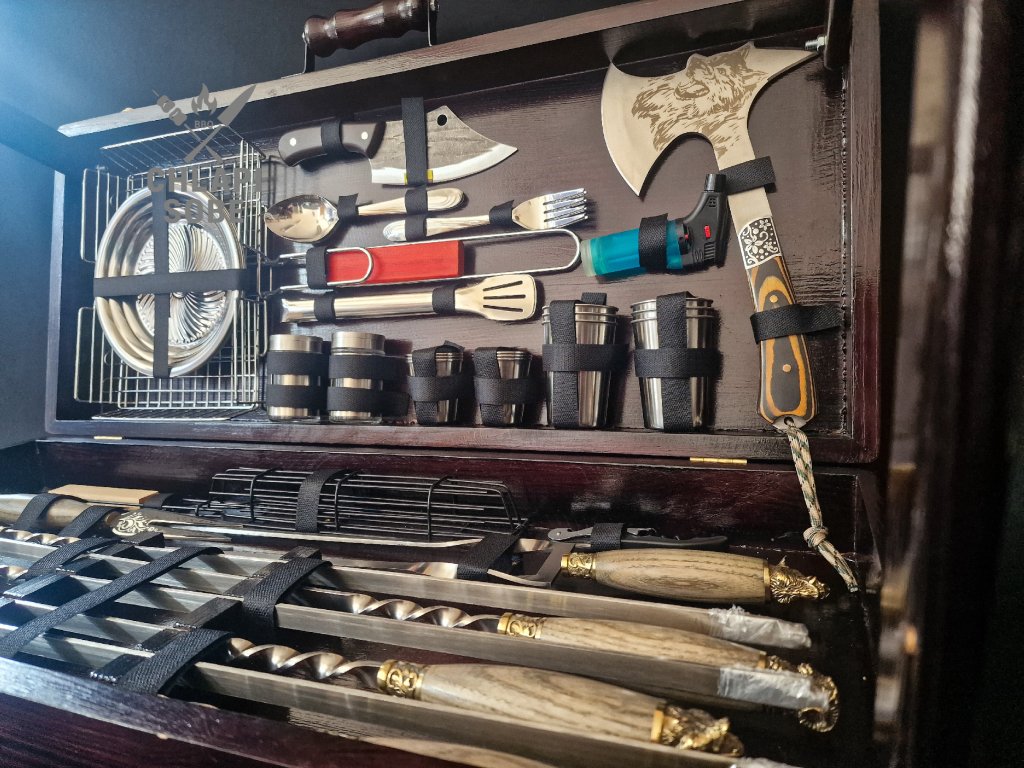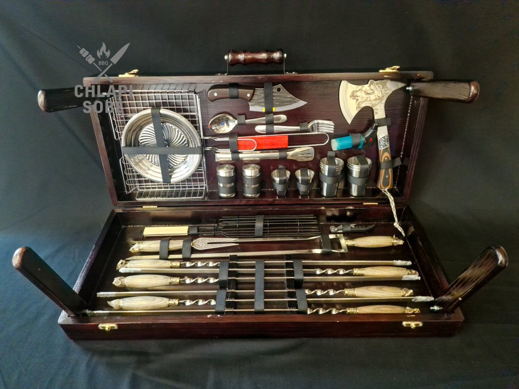 Grilovací sada „BURŽUJ“ je ztělesněním vytříbeného vkusu, funkčnosti a síly. Tato luxusní výbava potěší každého milovníka grilování, který hledá nejen výkon, ale i detailní zpracování a charakter. Ideální pro náročné uživatele, outdoorové výpravy i reprezentativní dárek.