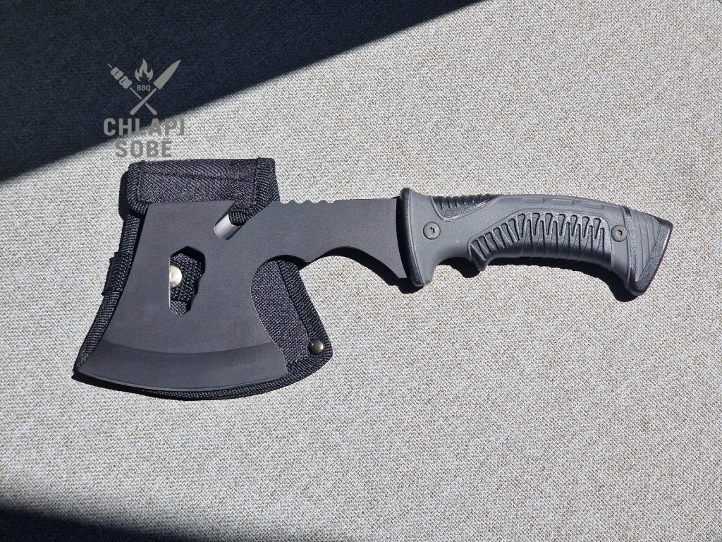 Prémiová sada pro skutečné chlapy – obsahuje vše potřebné pro grilování a pobyt v přírodě: 8 špízů, dvojitý špíz, multifunkční příbory, sekyrku, zapalovač, nůž, panáky i lžíce a vidličky. To vše stylově zabalené v pevném dřevěném kufru.