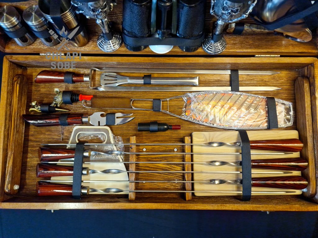 Grilovací sada „Drákula“ je ideální volbou pro milovníky masa, ohně a gotické estetiky – kov, tmavé dřevo, poháry jako z hostiny upírů. Hodí se na chatu, do lesa, pro lovce, gril-mistry, fanoušky fantasy a všechny, kteří vnímají grilování jako rituál, ne jako rutinu. Výjimečný dárek pro muže, kteří chtějí mít výbavu, která budí respekt – a vypadá, jako by vypadla ze středověké ságy.