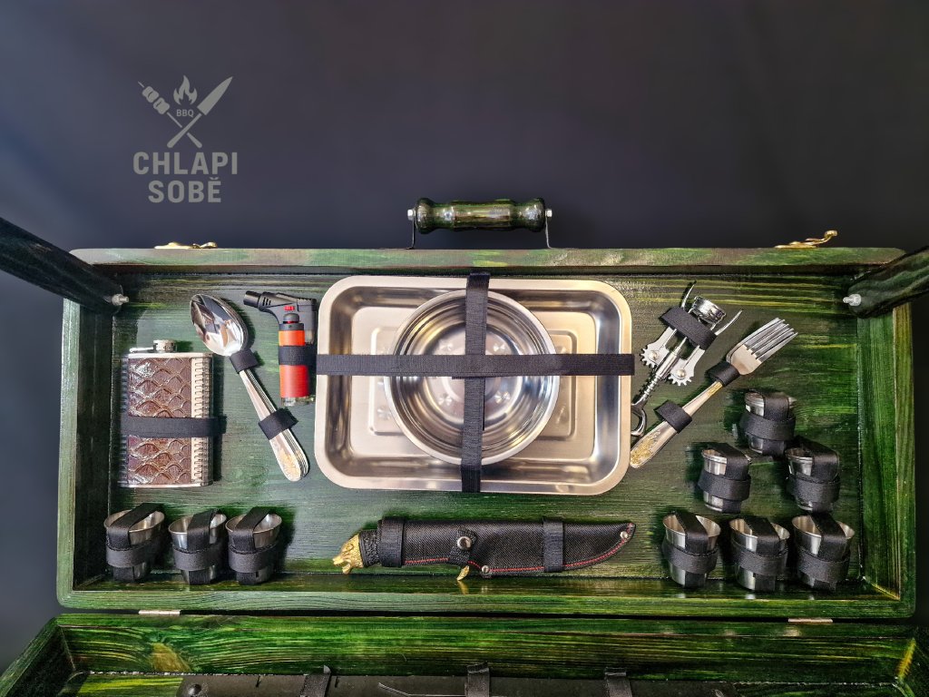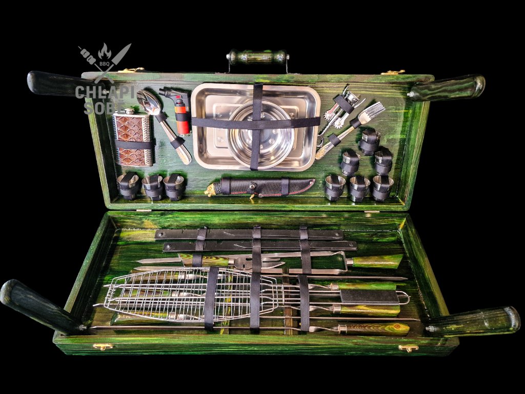 Praktický kufr „VŠE V JEDNOM“, který se během pár vteřin rozloží do podoby pohodlného piknikového stolu s kompletní BBQ výbavou. Vhodný na zahradu, piknik, rybaření či kempování.