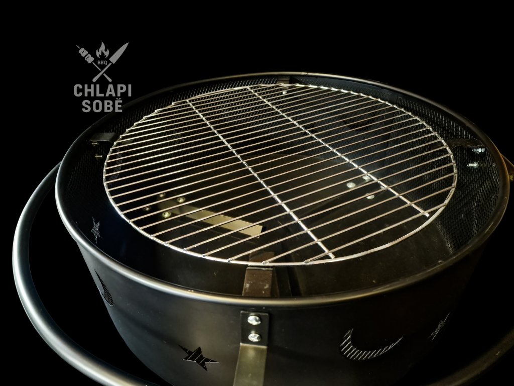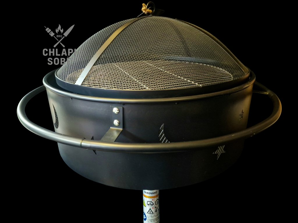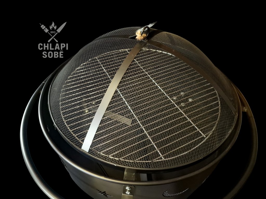 Součástí balení je ocelové víko s madlem, které slouží jako jiskřiště při použití grilu jako ohniště.