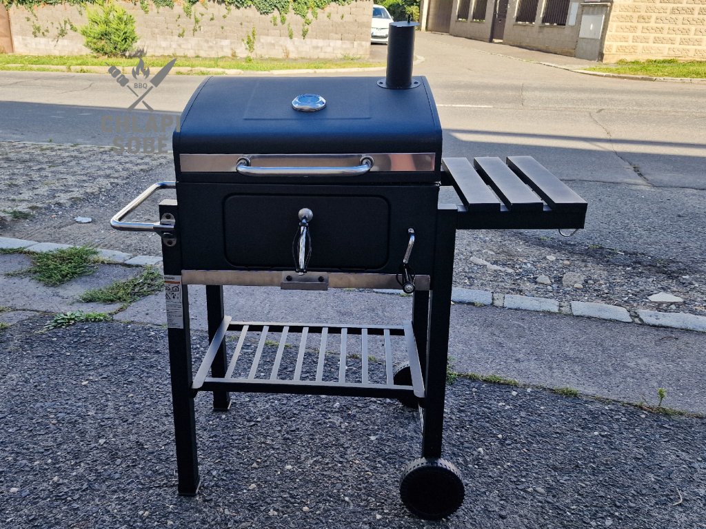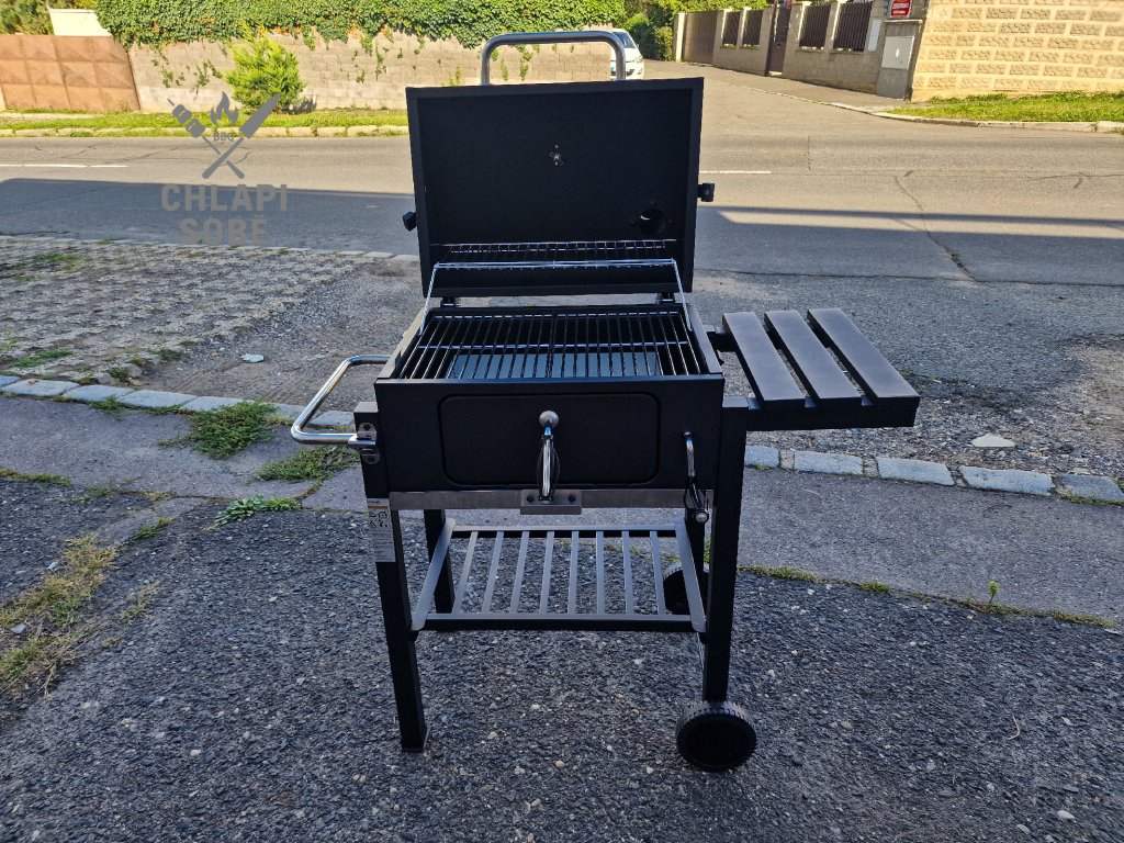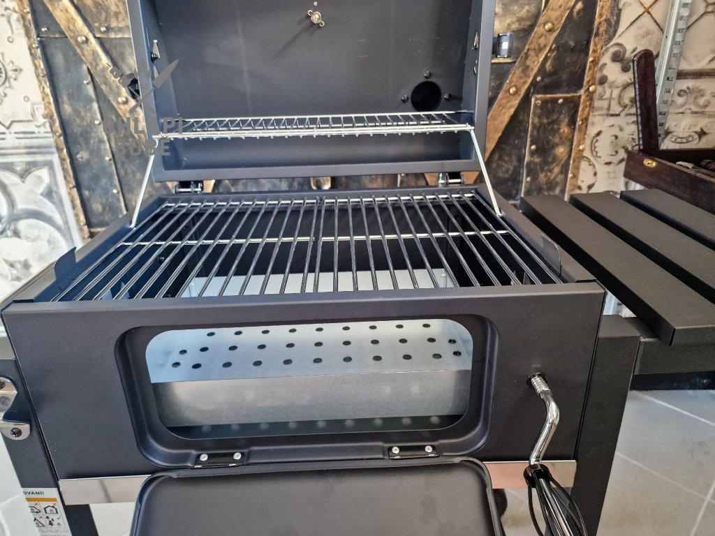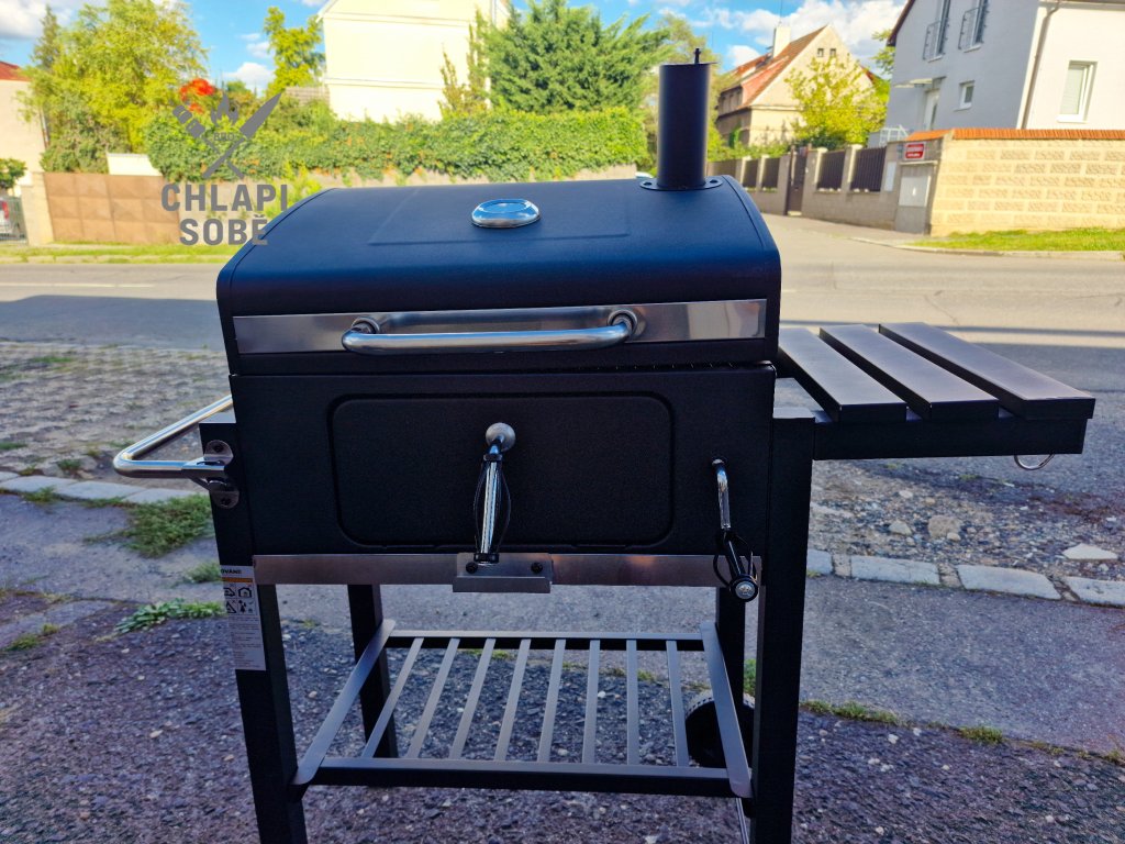 Gril je také vybaven čelnými dvířky umožňujícími pohodlné přikládání paliva během grilování. Na dvou grilovacích roštech můžete zároveň připravovat maso i zeleninu. Boční odkládací plocha a spodní police poskytují dostatek prostoru pro Vaše grilovací vybavení..