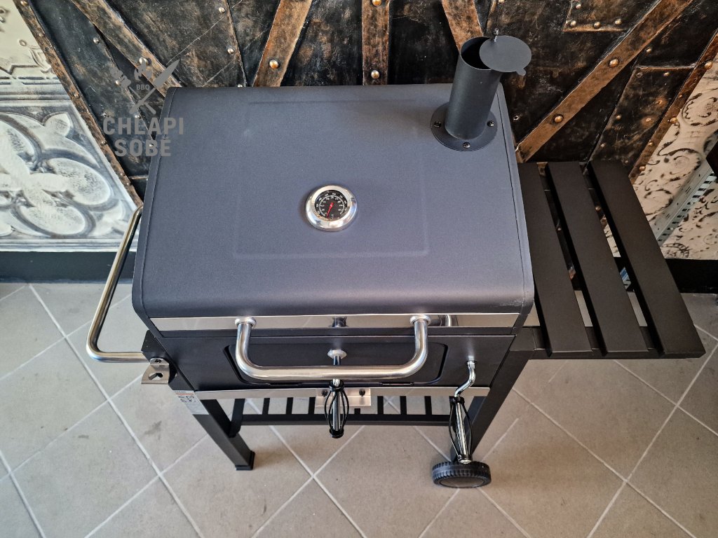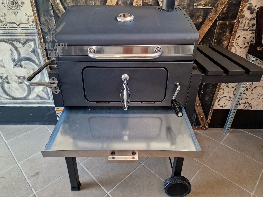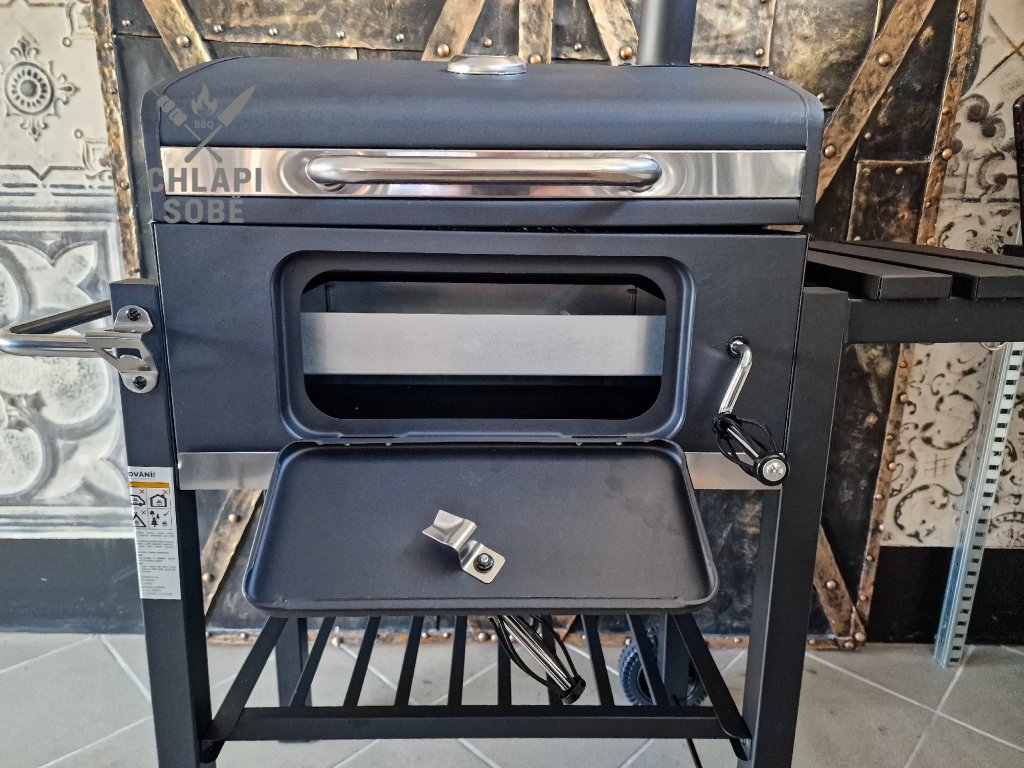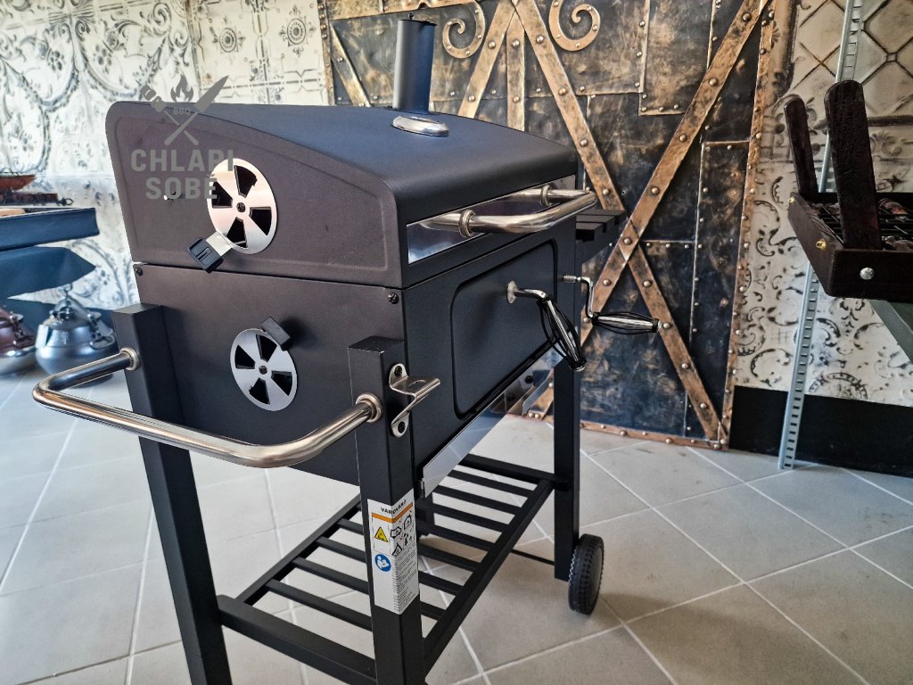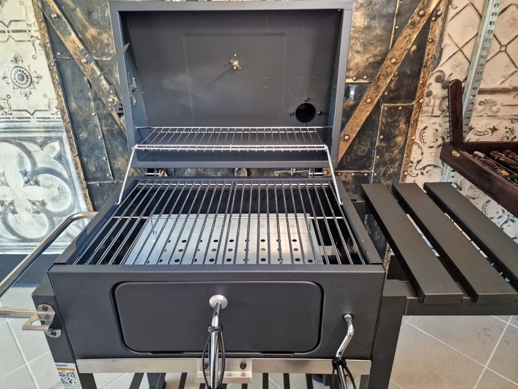 Gril je také vybaven čelnými dvířky umožňujícími pohodlné přikládání paliva během grilování. Na dvou grilovacích roštech můžete zároveň připravovat maso i zeleninu. Boční odkládací plocha a spodní police poskytují dostatek prostoru pro Vaše grilovací vybavení..